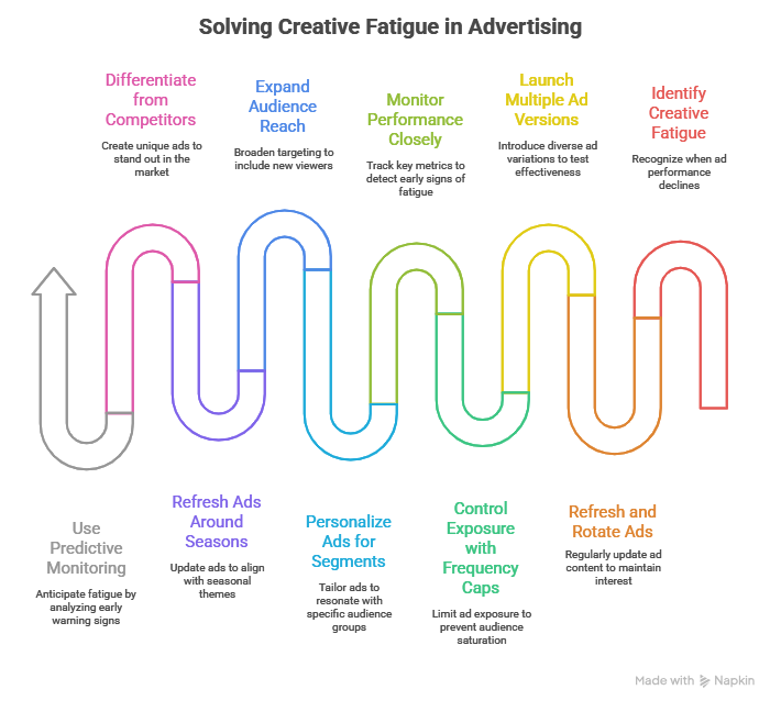 Creative fatigue shows up when performance drops and your ads no longer capture attention. Solving it means taking both quick corrective steps and long-term measures that keep ads fresh.