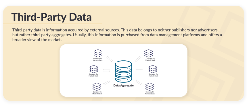 - Third-party data comes from external sources that track demographics, interests, behaviors, and purchase intent, helping advertisers find new audiences beyond their existing customers.